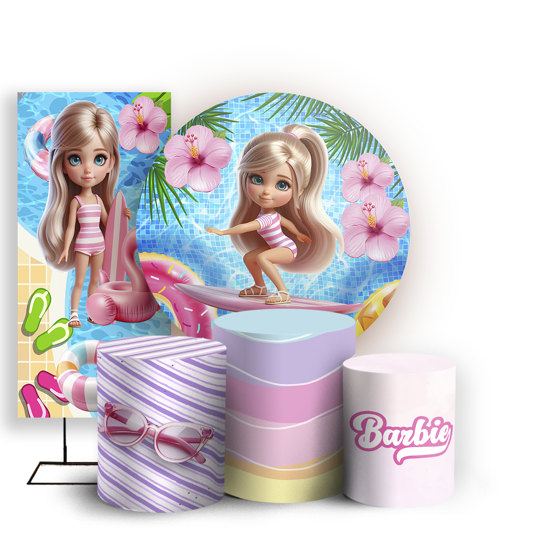 KIT Redondo Trio e Faixa - Barbie Pool Party - Sublimado 3D