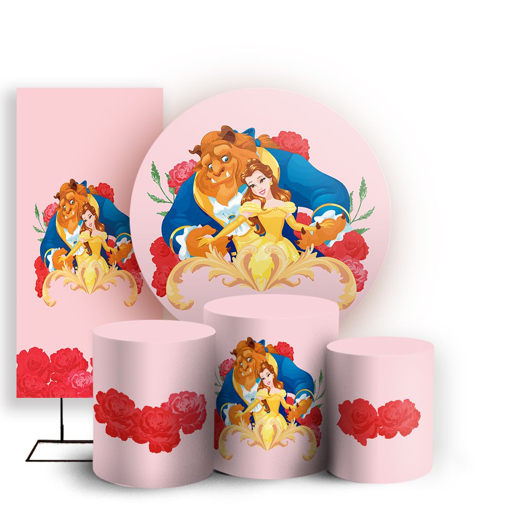 KIT Redondo Trio e Faixa - Bela e a Fera - Sublimado 3D