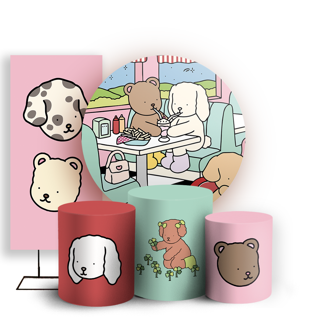 Com o kit Redondo, Trio de capas e Faixa lateral você criar uma decoração criativa para qualquer festa ou evento.