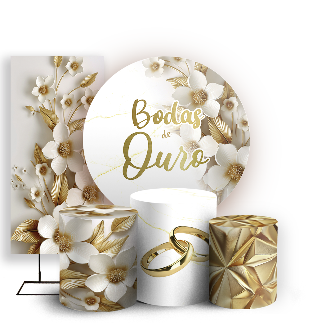 KIT Redondo Trio e Faixa - Bodas De Ouro - Sublimado 3D
