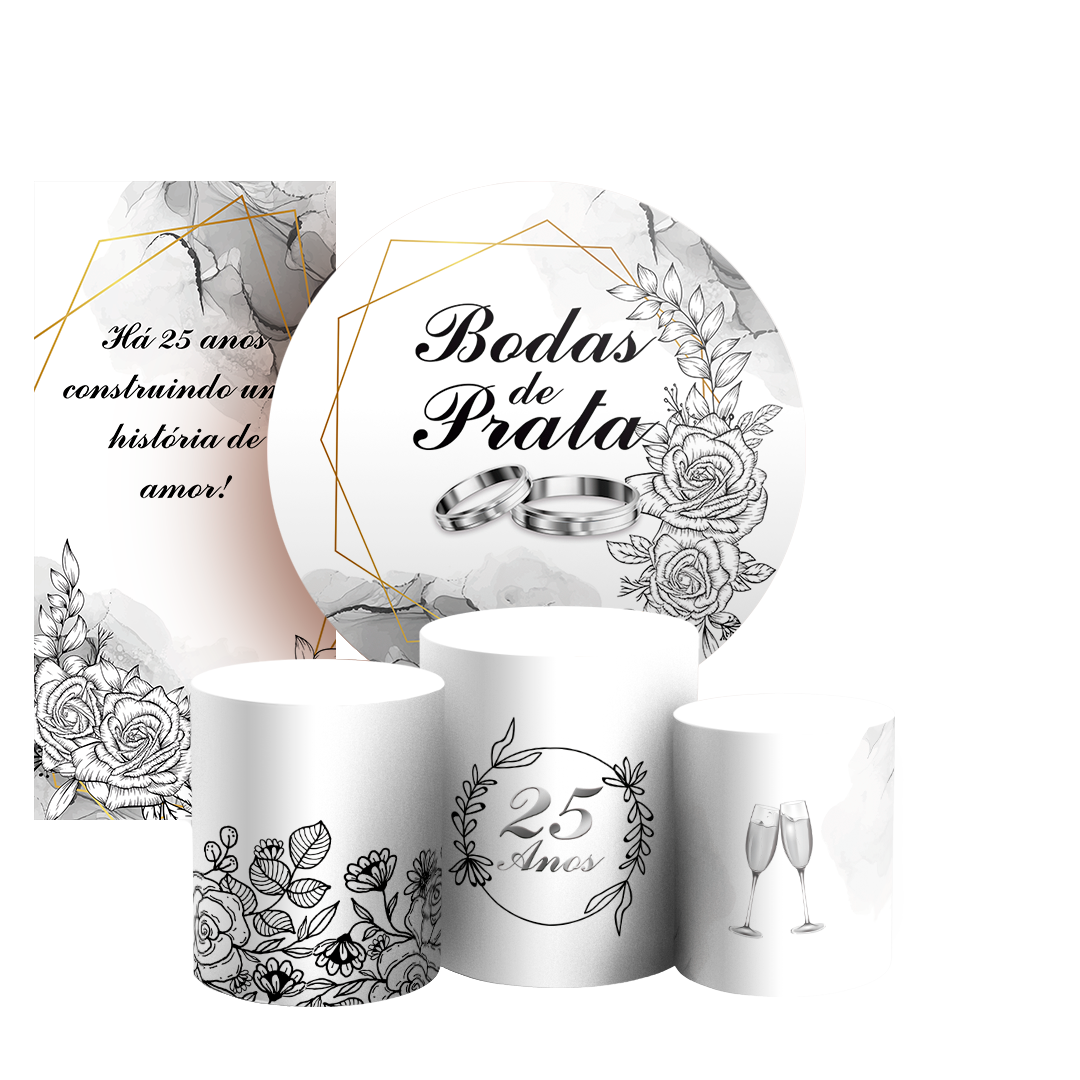 KIT Redondo Trio e Faixa - Bodas de Prata - Sublimado 3D