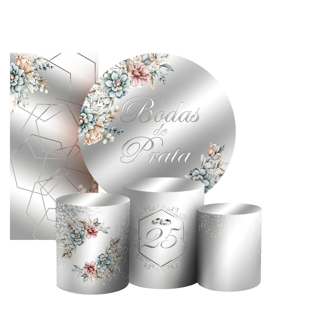 KIT Redondo Trio e Faixa - Bodas de Prata - Sublimado 3D