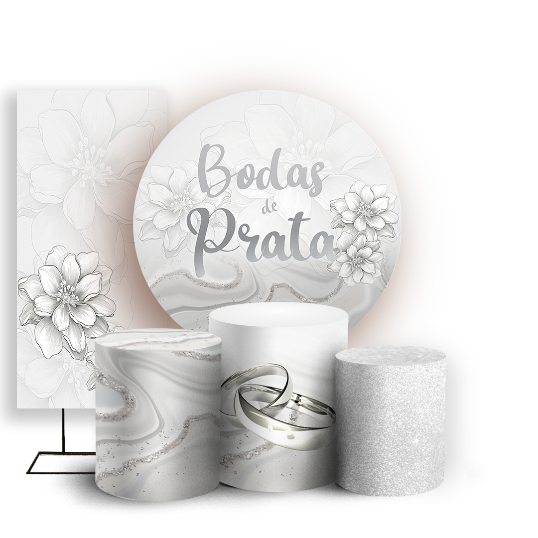 KIT Redondo Trio e Faixa - Bodas De Prata - Sublimado 3D