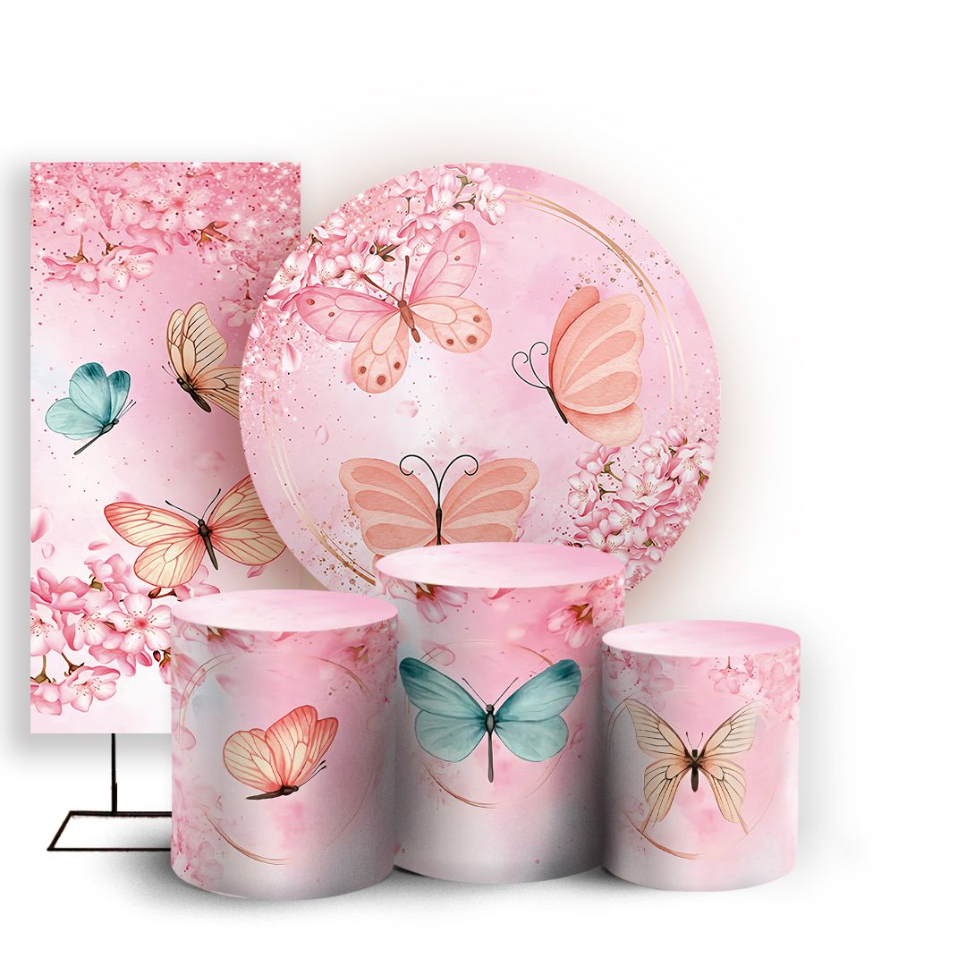 KIT Redondo Trio e Faixa - Borboletas - Sublimado 3D