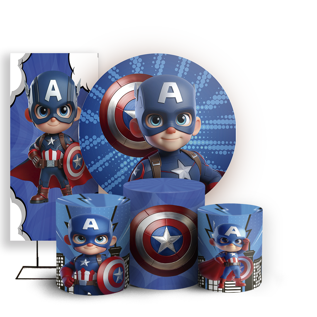 KIT Redondo Trio e Faixa - Capitão América - Sublimado 3D