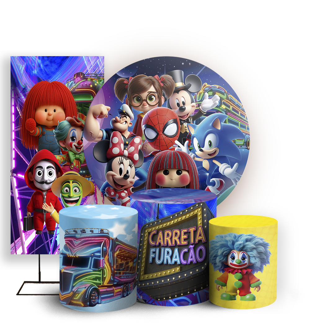 Com o kit Redondo, Trio de capas e Faixa lateral você criar uma decoração criativa para qualquer festa ou evento.