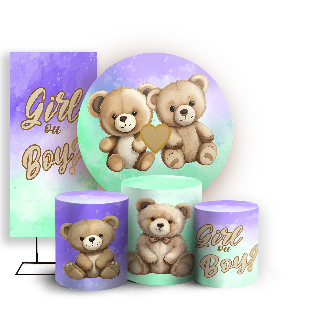 KIT Redondo Trio e Faixa - Chá Revelação - Sublimado 3D