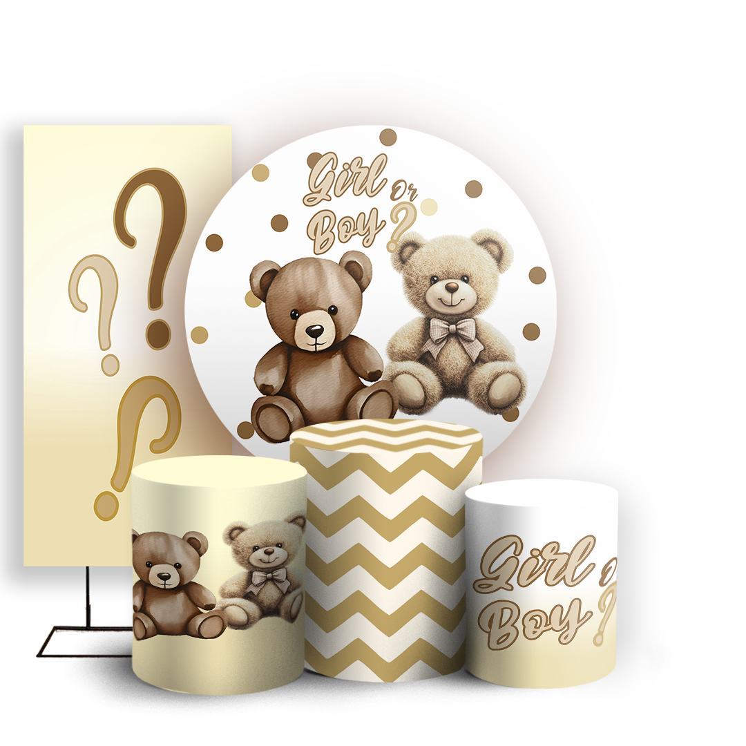 KIT Redondo Trio e Faixa - Chá Revelação - Sublimado 3D