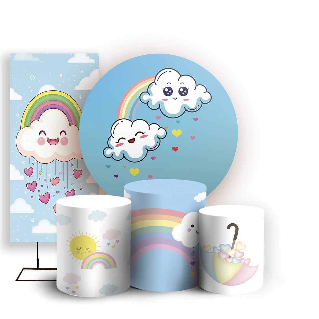 Com o kit Redondo, Trio de capas e Faixa lateral você criar uma decoração criativa para qualquer festa ou evento.