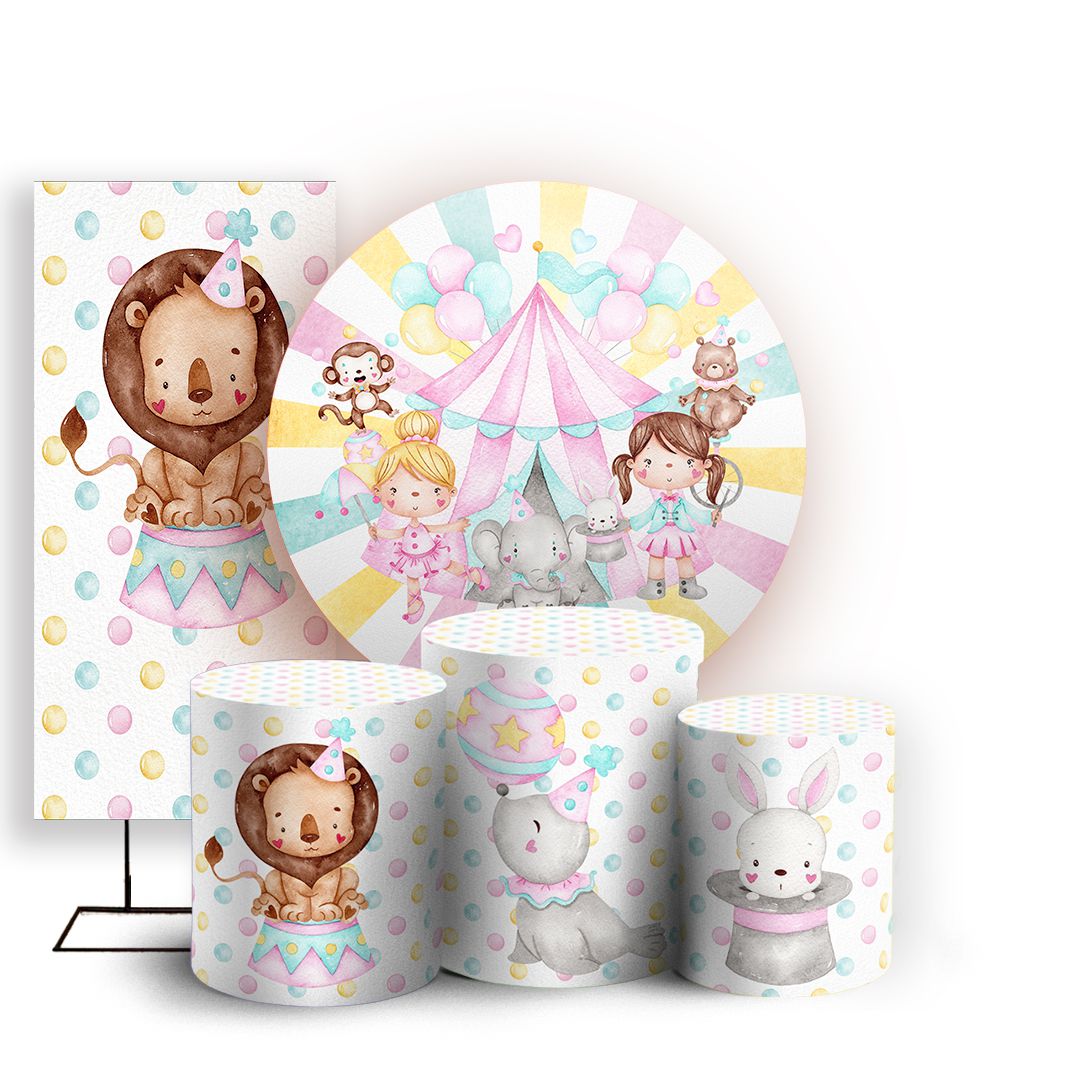 KIT Redondo Trio e Faixa - Circo Rosa Aquarelado - Sublimado 3D