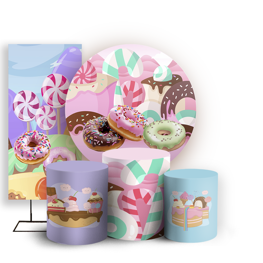 Com o kit Redondo, Trio de capas e Faixa lateral você criar uma decoração criativa para qualquer festa ou evento.