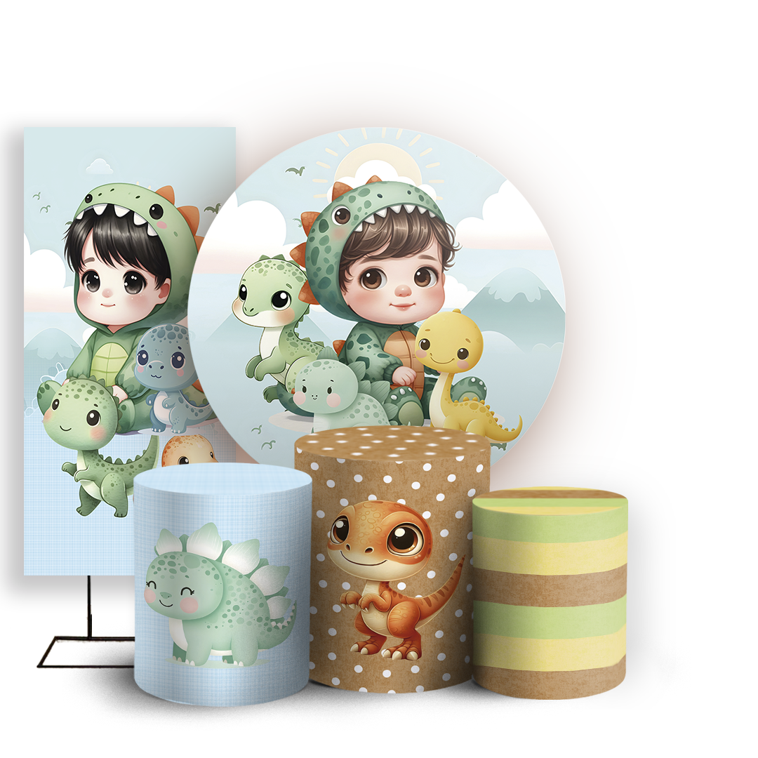 KIT Redondo Trio e Faixa - Dinossauro Menino - Sublimado 3D