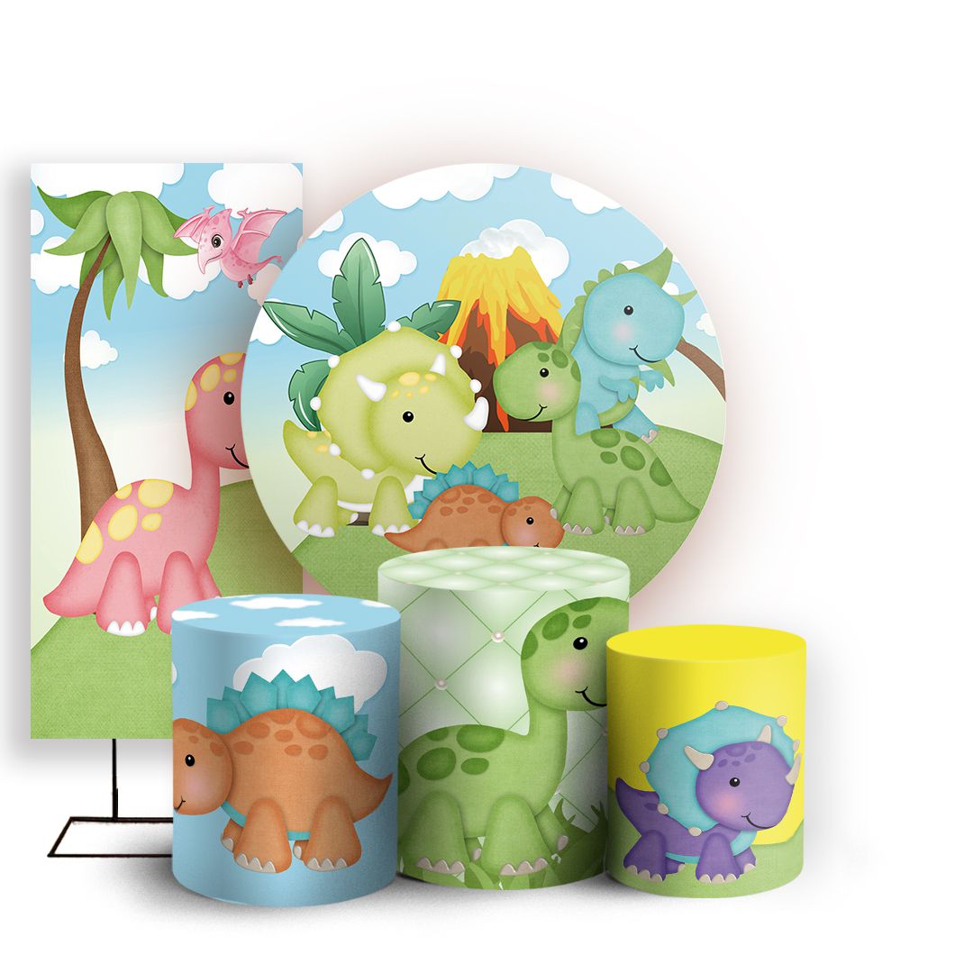 Capas Painel Redondo Trio Cilindro e Faixa Lateral Sublimado - Dinossauro