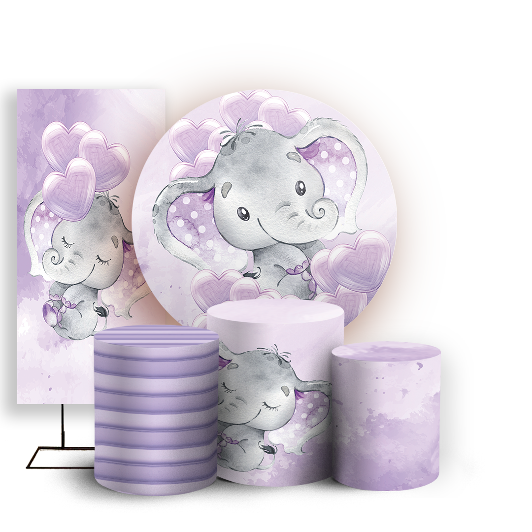KIT Redondo Trio e Faixa - Elefante Rosa - Sublimado 3D