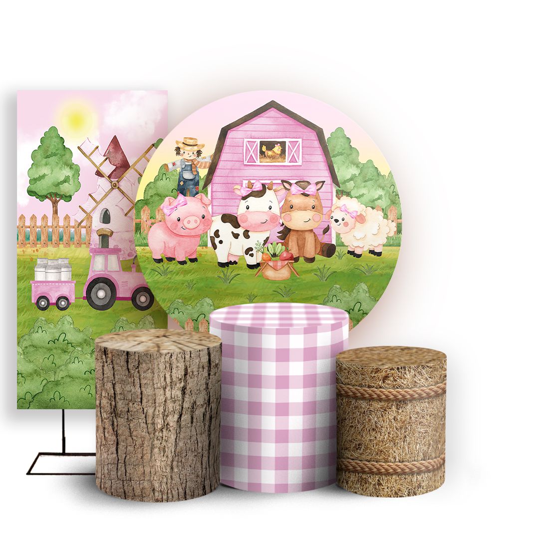 KIT Redondo Trio e Faixa - Fazendinha Aquarela - Sublimado 3D