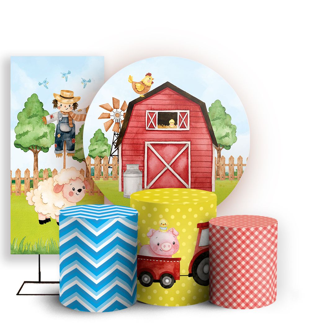 KIT Redondo Trio e Faixa - Fazendinha - Sublimado 3D