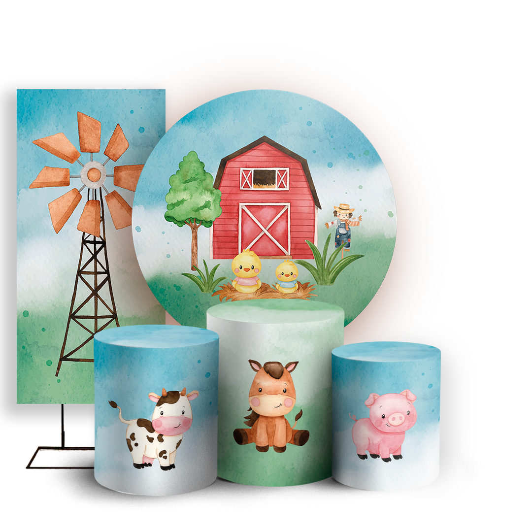 KIT Redondo Trio e Faixa - Fazendinha - Sublimado 3D