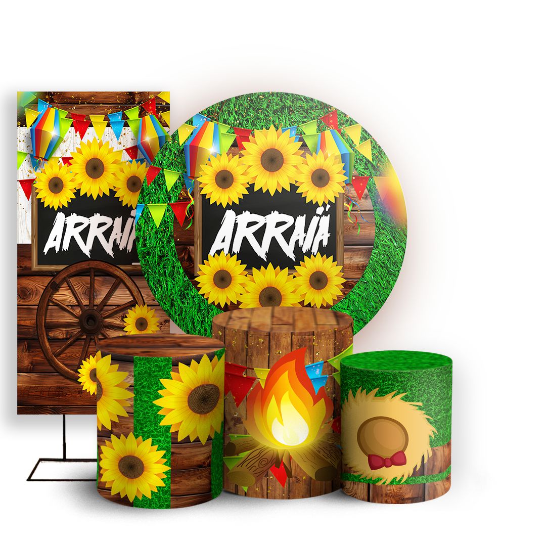 Capas Painel Redondo Trio Cilindro e Faixa Lateral Sublimado - Festa Junina