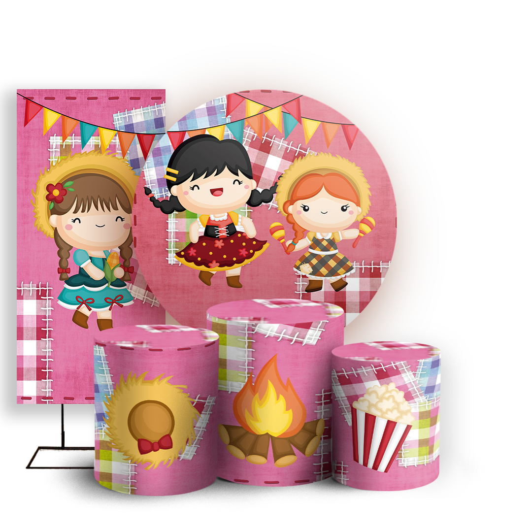 Com o kit Redondo, Trio de capas e Faixa lateral você criar uma decoração criativa para qualquer festa ou evento.