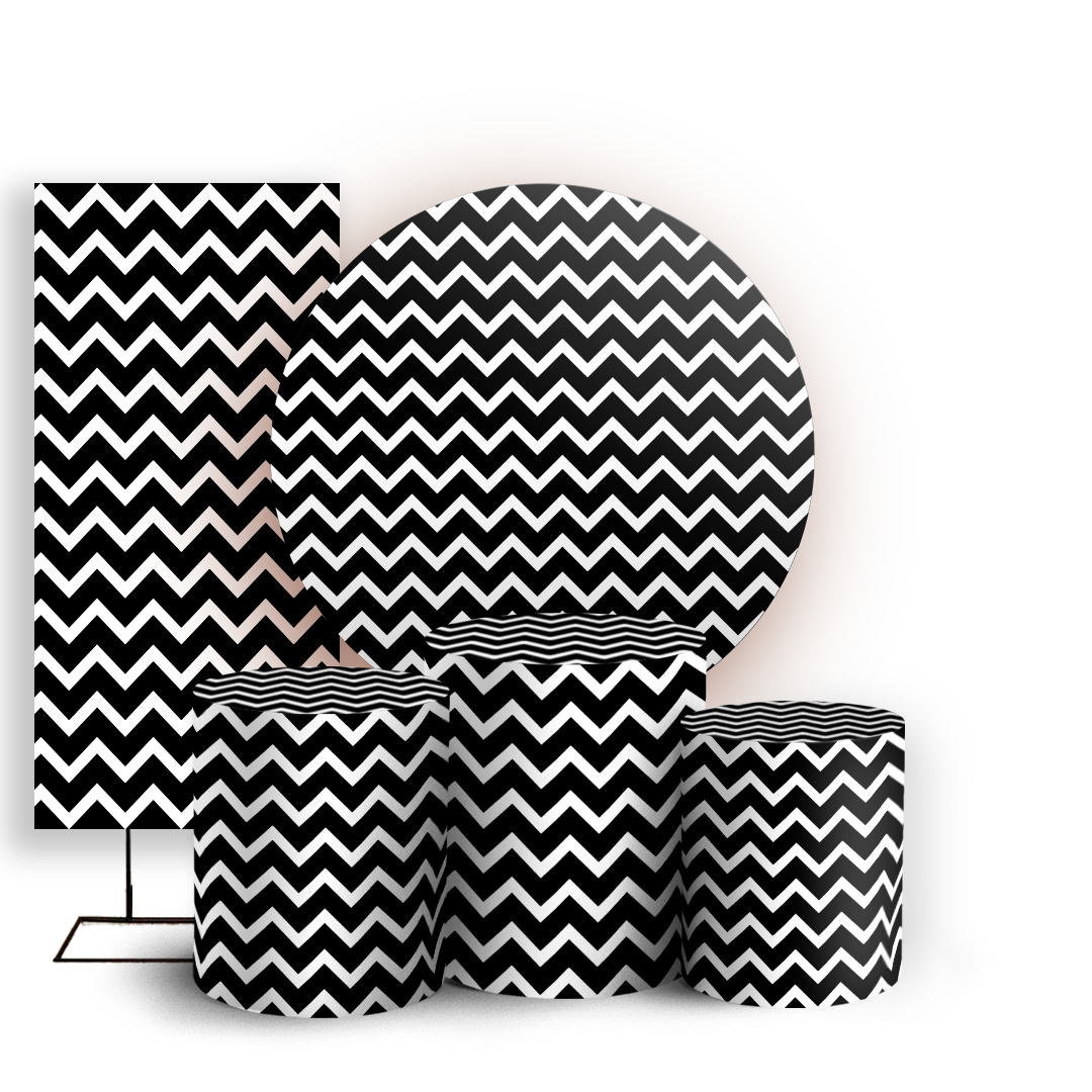 KIT Redondo Trio e Faixa - Fundo Chevron Zig Zag - Sublimado 3D
