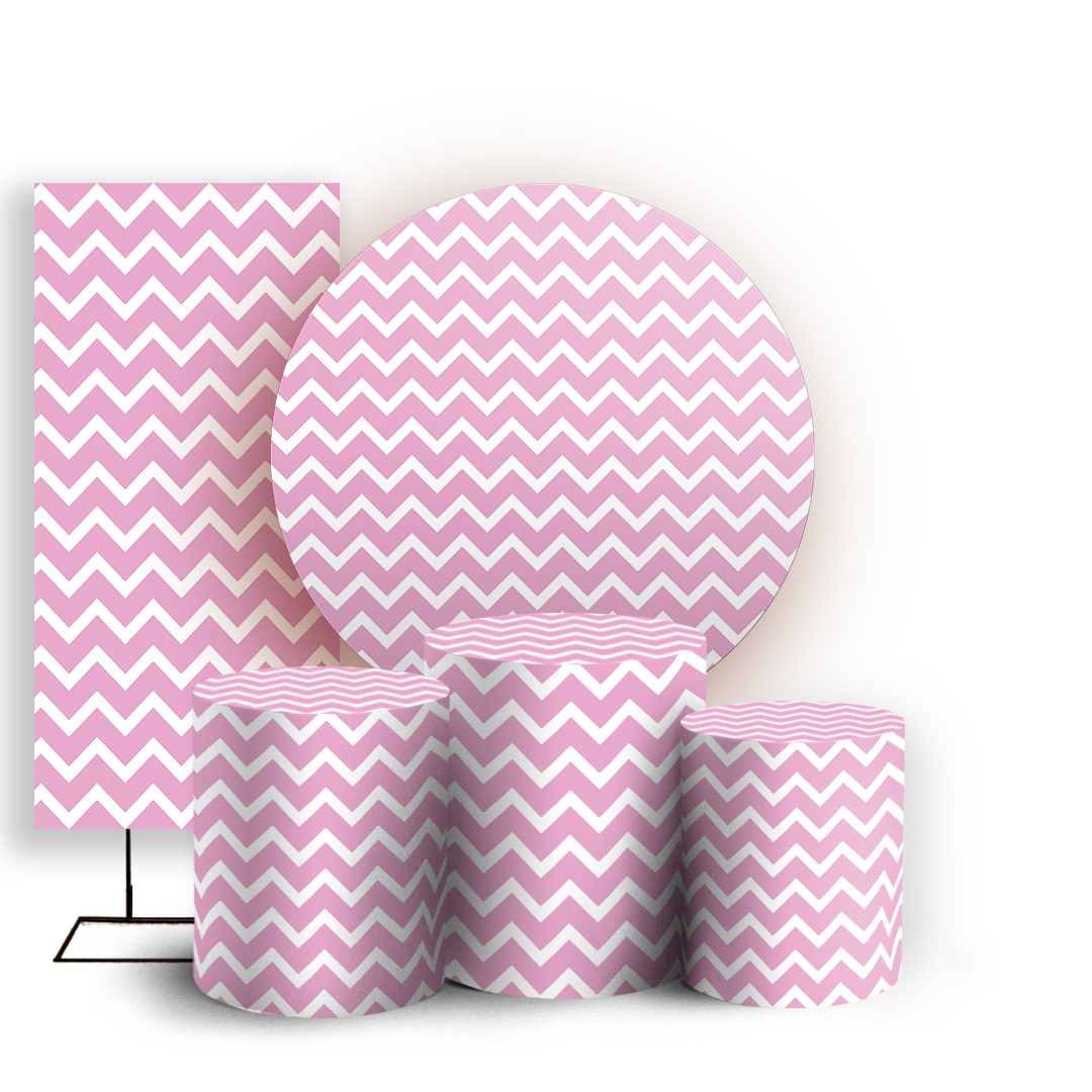 KIT Redondo Trio e Faixa - Fundo Chevron Zig Zag - Sublimado 3D