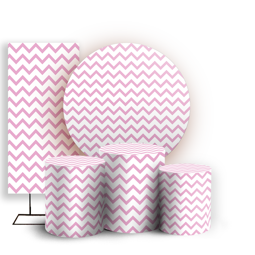 KIT Redondo Trio e Faixa - Fundo Chevron Zig Zag - Sublimado 3D