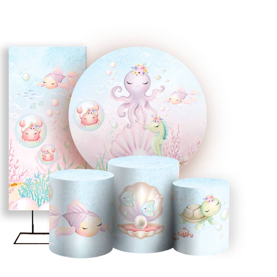 KIT Redondo Trio e Faixa - Fundo do Mar - Sublimado 3D