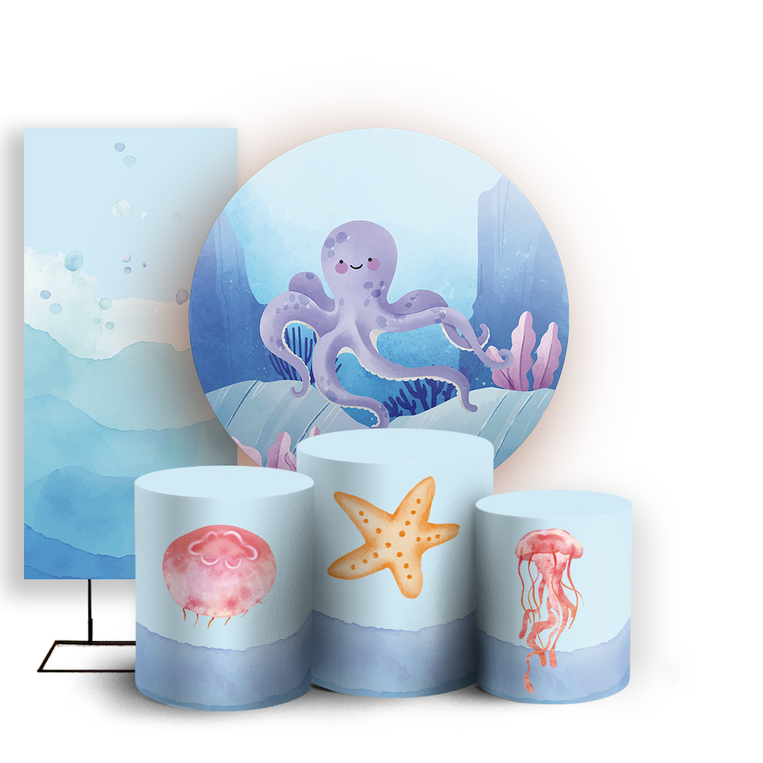 KIT Redondo Trio e Faixa - Fundo Do Mar - Sublimado 3D