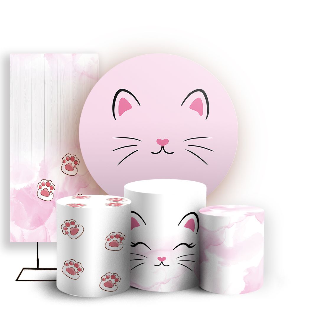 KIT Redondo Trio e Faixa - Gato Rosa - Sublimado 3D