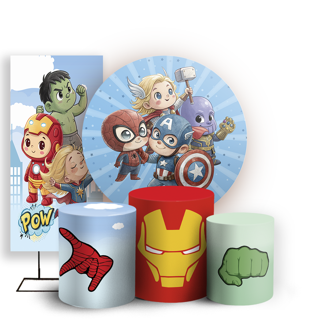 KIT Redondo Trio e Faixa - Herois Vingadores - Sublimado 3D