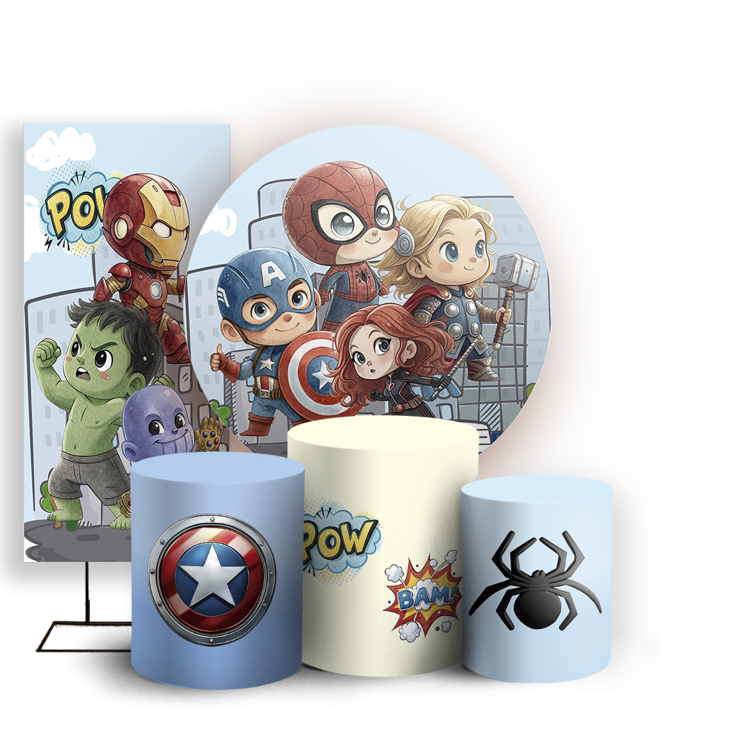 KIT Redondo Trio e Faixa - Herois Vingadores - Sublimado 3D
