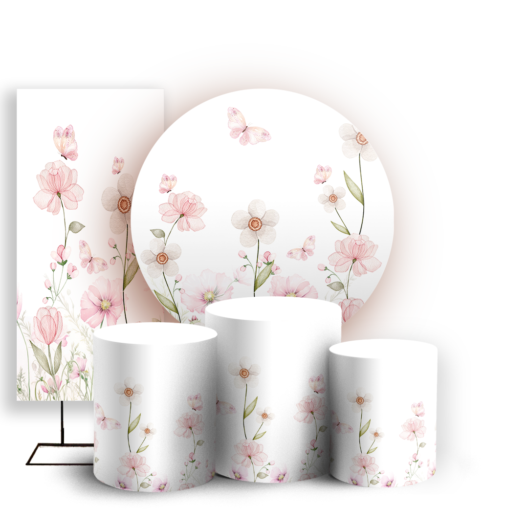 KIT Redondo Trio e Faixa - Jardim Floral - Sublimado 3D