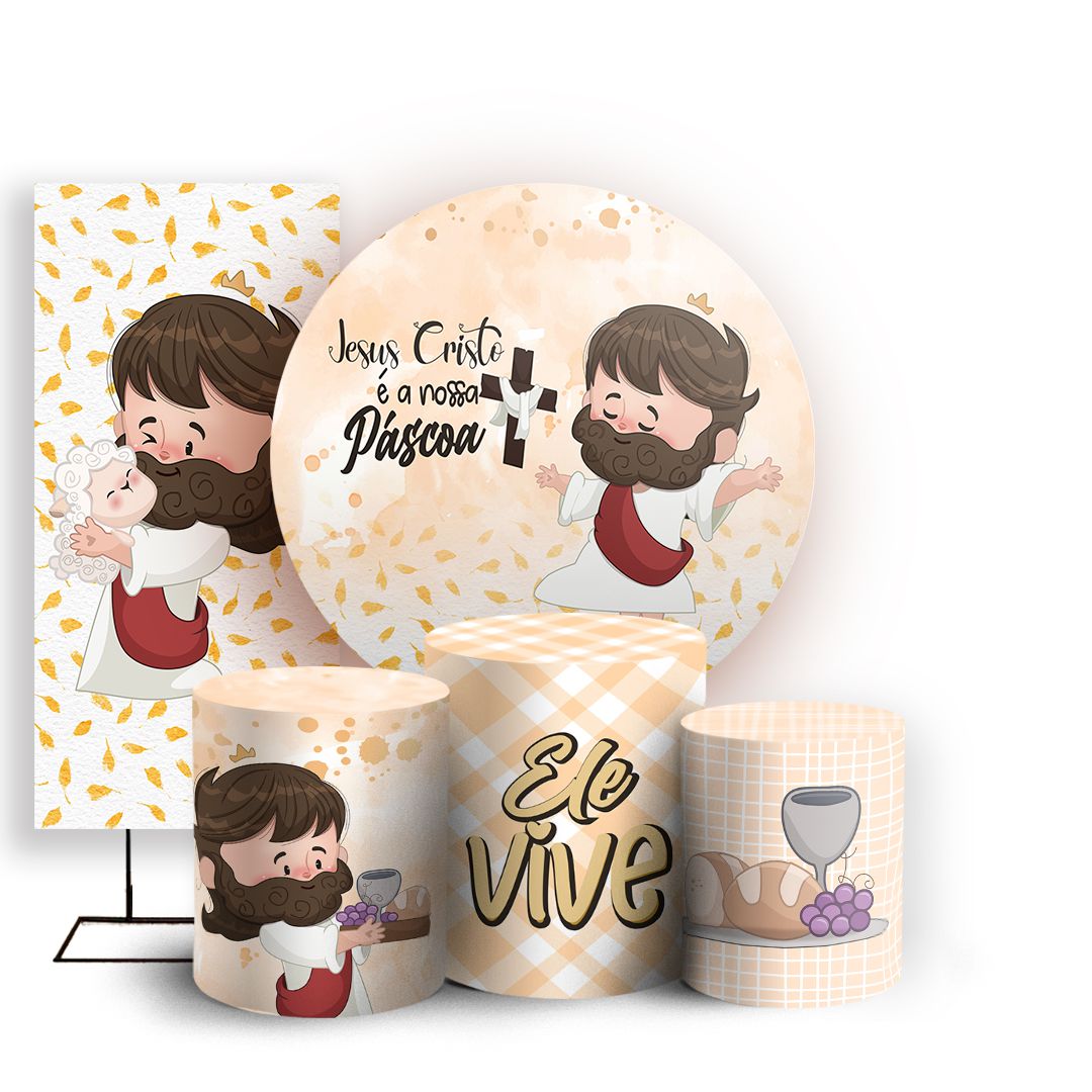 KIT Redondo Trio e Faixa - Jesus Pascoa - Sublimado 3D