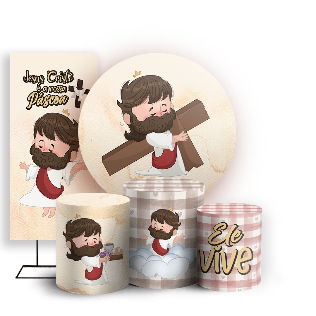 KIT Redondo Trio e Faixa - Jesus Pascoa - Sublimado 3D