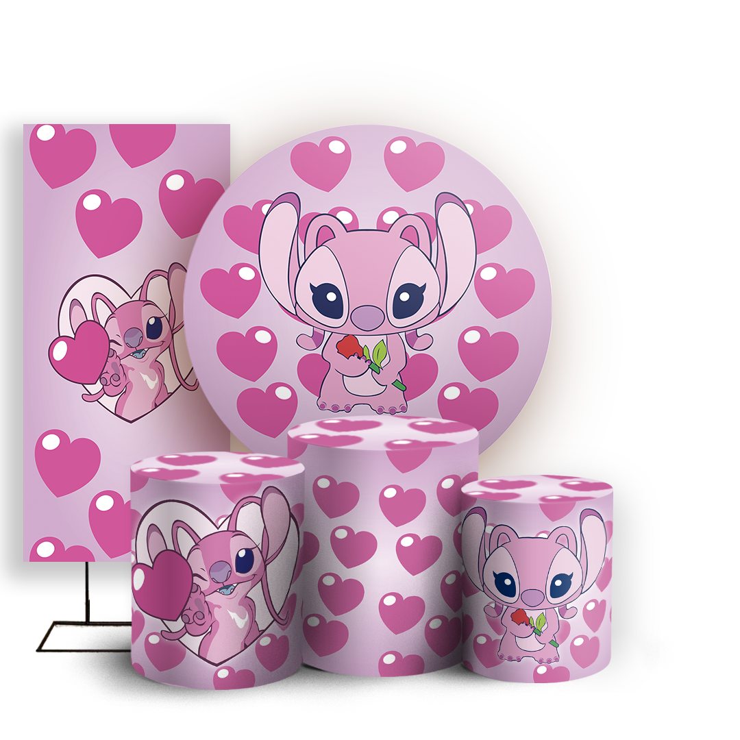 KIT Redondo Trio e Faixa - Lilo Stitch Angel - Sublimado 3D