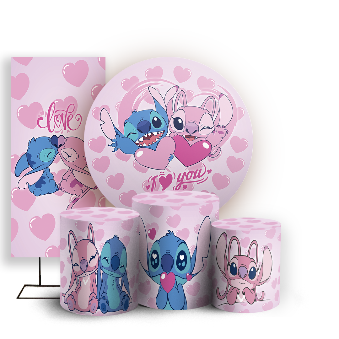 KIT Redondo Trio e Faixa - Lilo Stitch Angel - Sublimado 3D