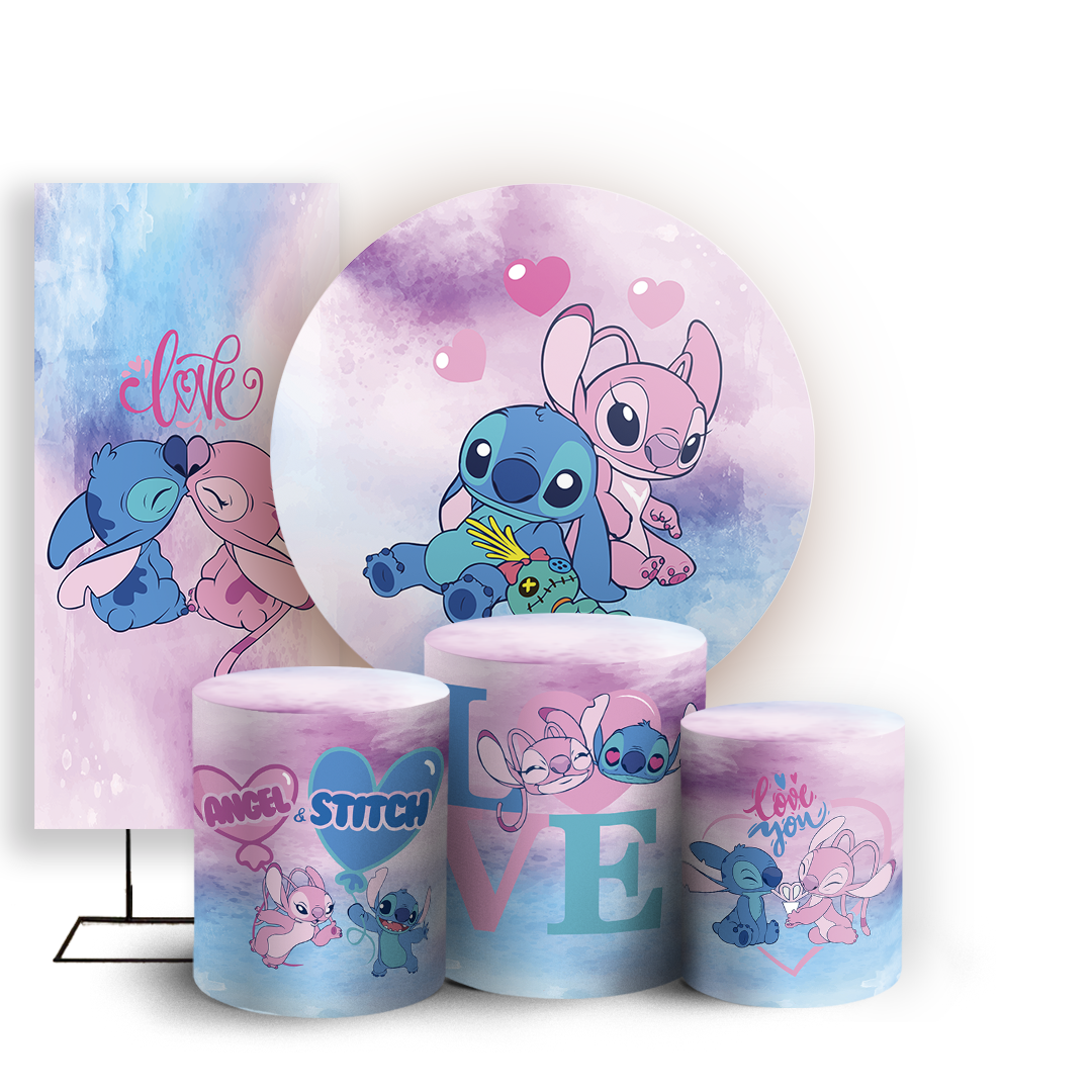 KIT Redondo Trio e Faixa - Lilo Stitch Angel - Sublimado 3D