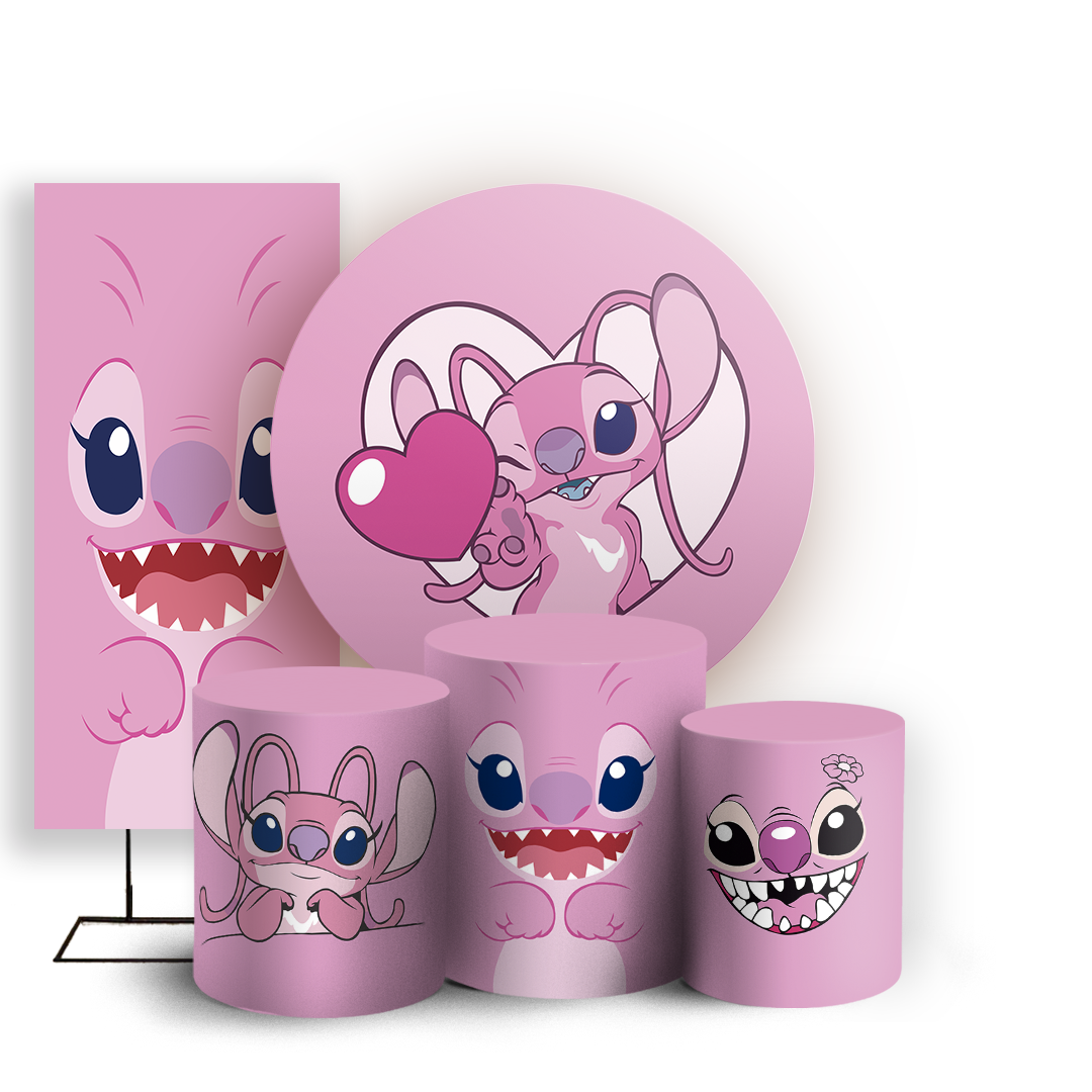 KIT Redondo Trio e Faixa - Lilo Stitch Angel - Sublimado 3D