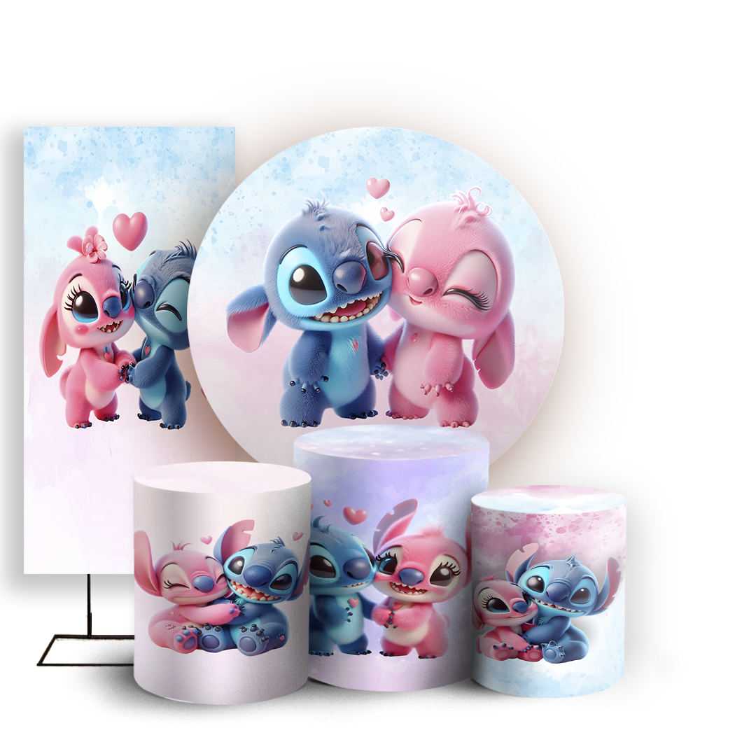 KIT Redondo Trio e Faixa - Lilo Stitch Angel - Sublimado 3D