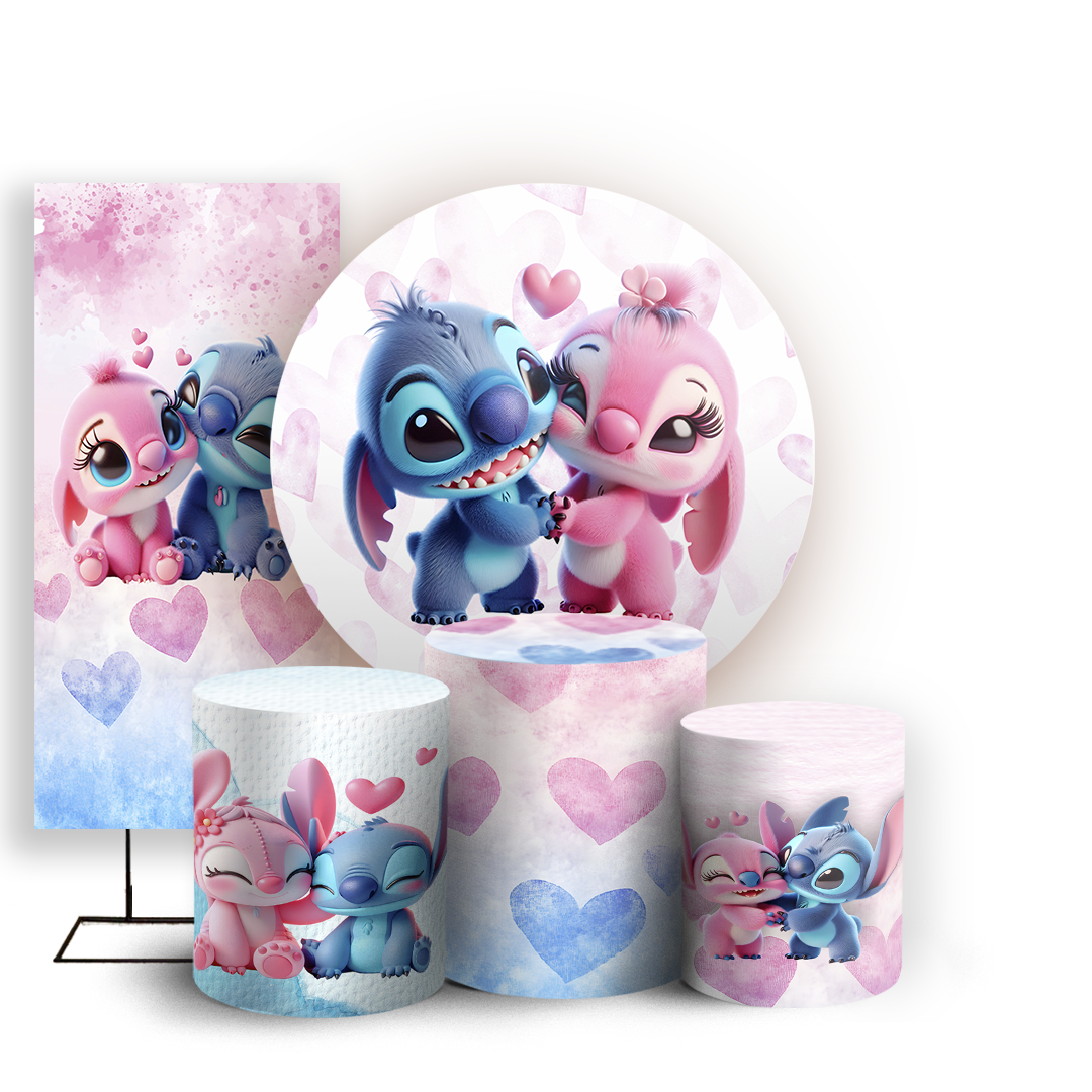 KIT Redondo Trio e Faixa - Lilo Stitch Angel - Sublimado 3D