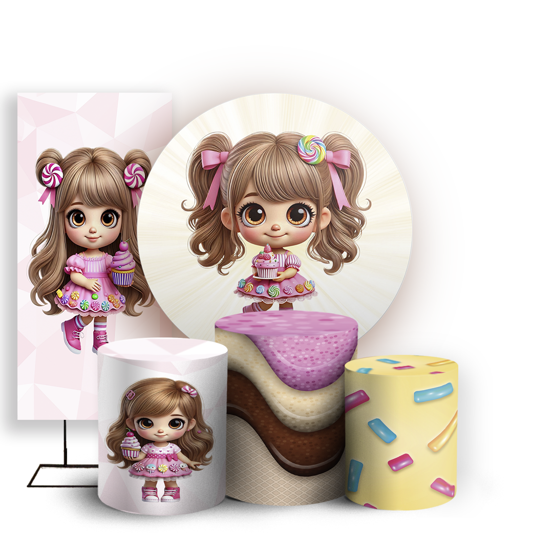 KIT Redondo Trio e Faixa - Menina Confeitaria Doces - Sublimado 3D
