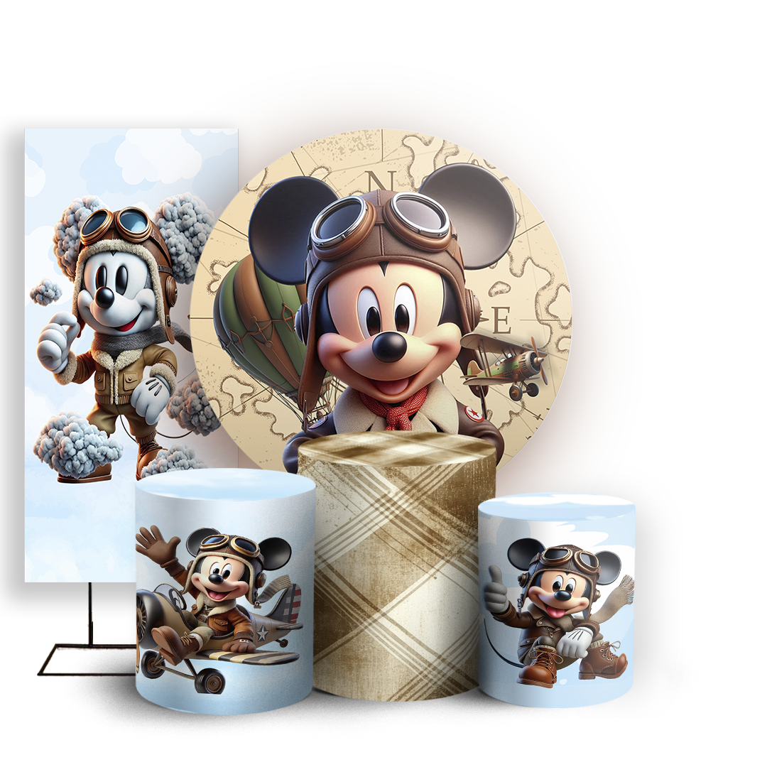 KIT Redondo Trio e Faixa - Mickey Aviador - Sublimado 3D