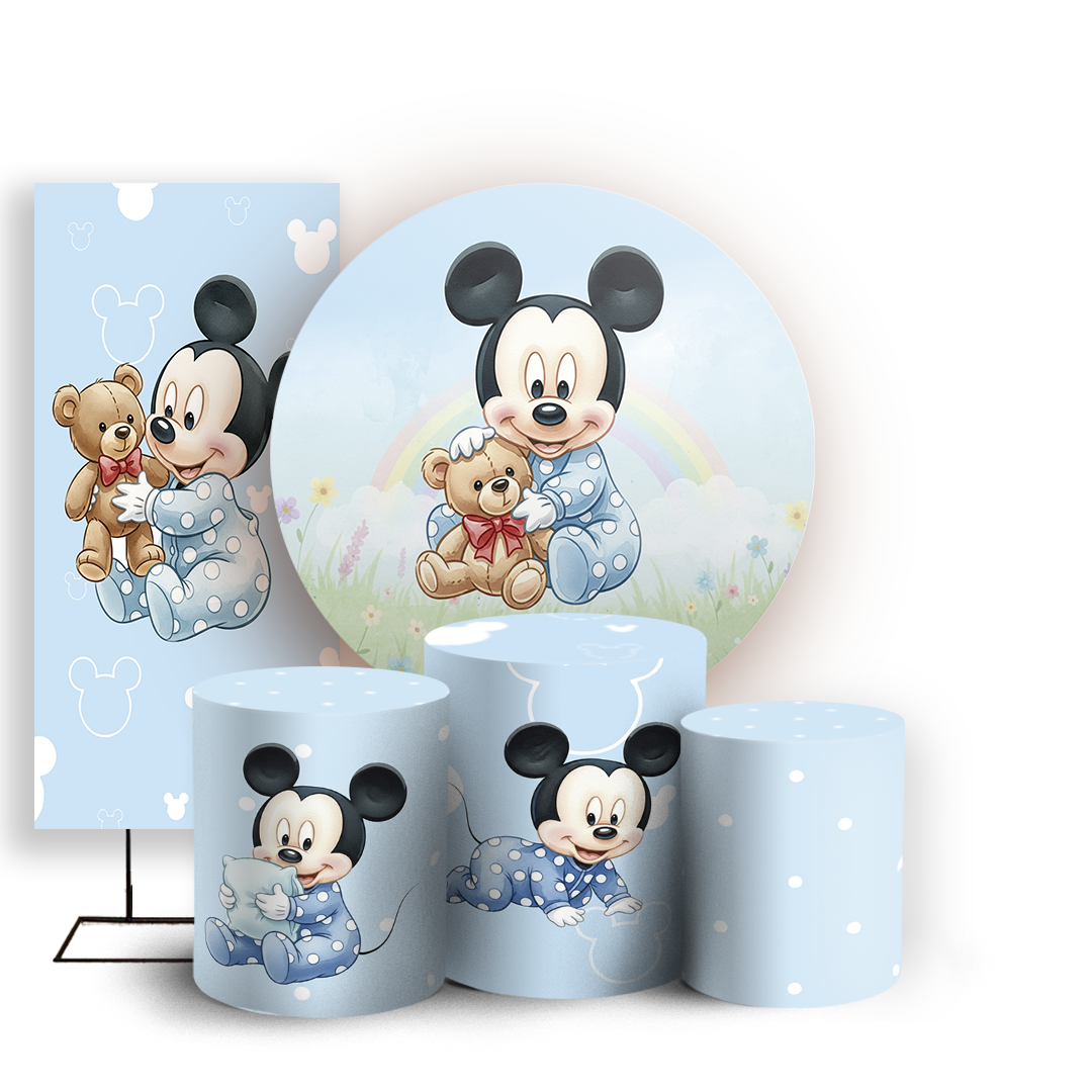 KIT Redondo Trio e Faixa - Mickey Baby Azul - Sublimado 3D
