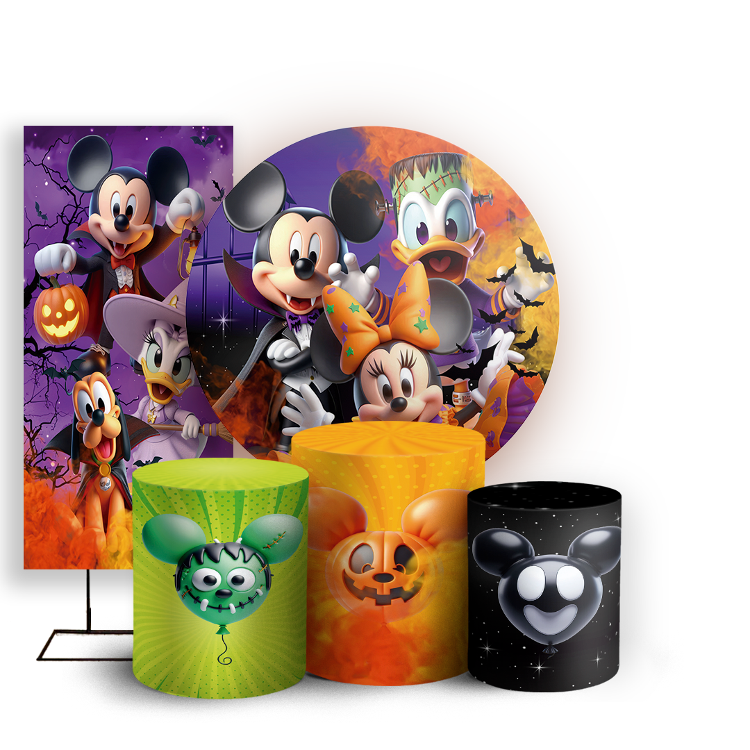 KIT Redondo Trio e Faixa - Mickey Dia das Bruxas Halloween - Sublimado 3D