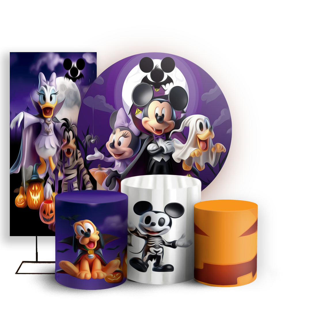 KIT Redondo Trio e Faixa - Mickey Dia das Bruxas Halloween - Sublimado 3D