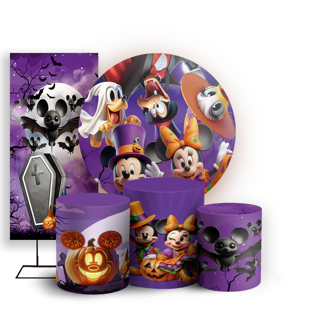 KIT Redondo Trio e Faixa - Mickey Dia das Bruxas Halloween - Sublimado 3D