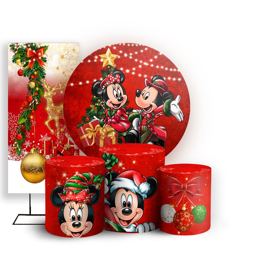 KIT Redondo Trio e Faixa - Mickey e Minnie Natal - Sublimado 3D