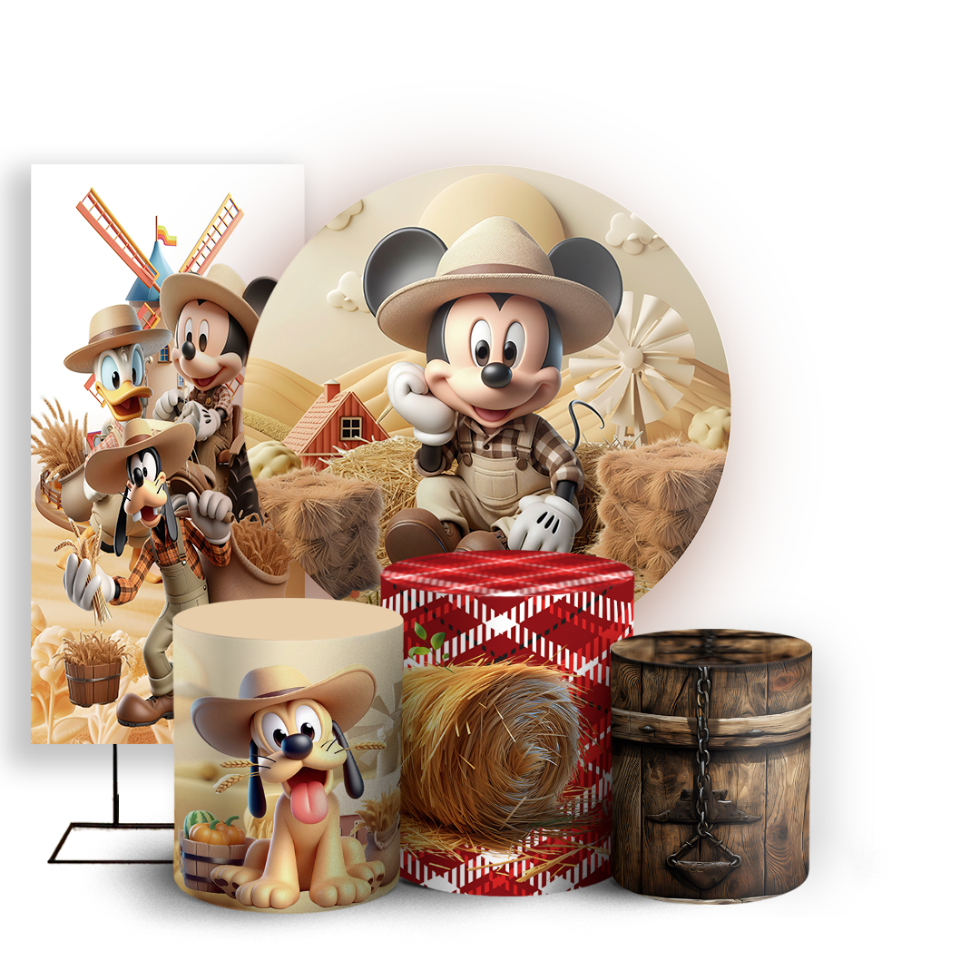 KIT Redondo Trio e Faixa - Mickey Fazendinha - Sublimado 3D
