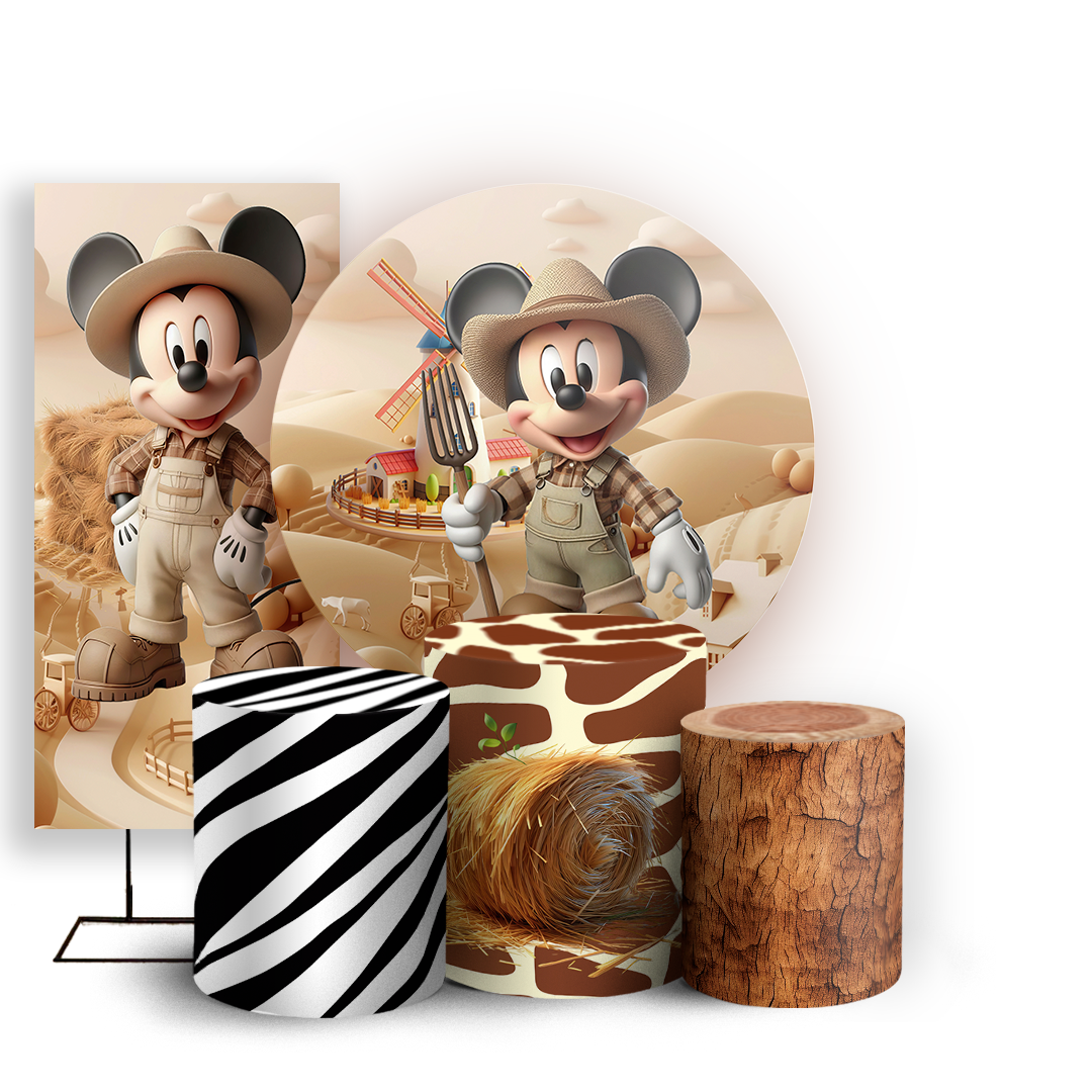 KIT Redondo Trio e Faixa - Mickey Fazendinha - Sublimado 3D