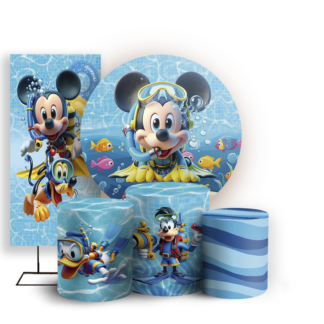 KIT Redondo Trio e Faixa - Mickey Pool Party - Sublimado 3D